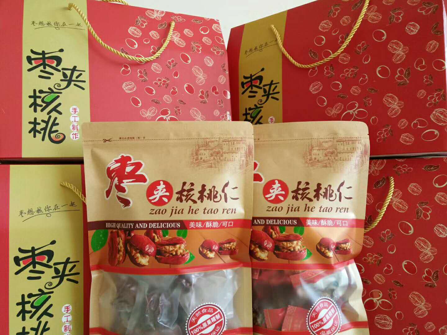 枣夹核桃具备核桃与红枣的功效,含有丰富维生素、蛋白质、油脂、碳水化合物、糖分、钙铁锌硒等微量元素,具有补血益气、养颜、健脑、润肠、缓解疲劳、促进身体发育等作用。