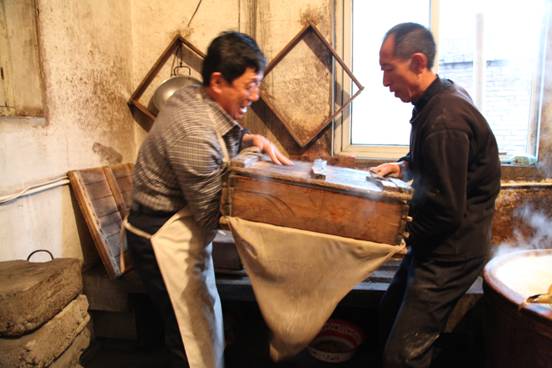 搬运豆腐,对这些作坊的工人来讲,也是个体力活。