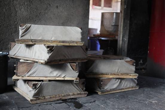 豆腐的挤压需要一个过程,每个豆花上面的石块都在30至50公斤才能得到这味美洁白的豆腐。